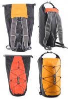 使用超輕70丹尼3000~4000m/m高防水布料主袋上方插扣式封口、易於收納、袋內車縫線、均經防水貼帶熱封處理、前方置物鬆緊繩調節設計、使用輕量透氣背負系統、附加胸袋設計 .